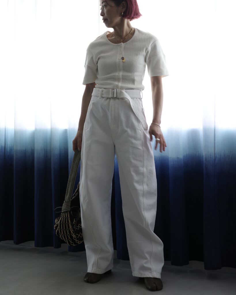 ルメールの定番サマーアイテム、定番アイテムです。シルケット加工を施した軽くて滑らかなコットンジャージー素材を使用し、シルクのような光沢感を放ちます。
