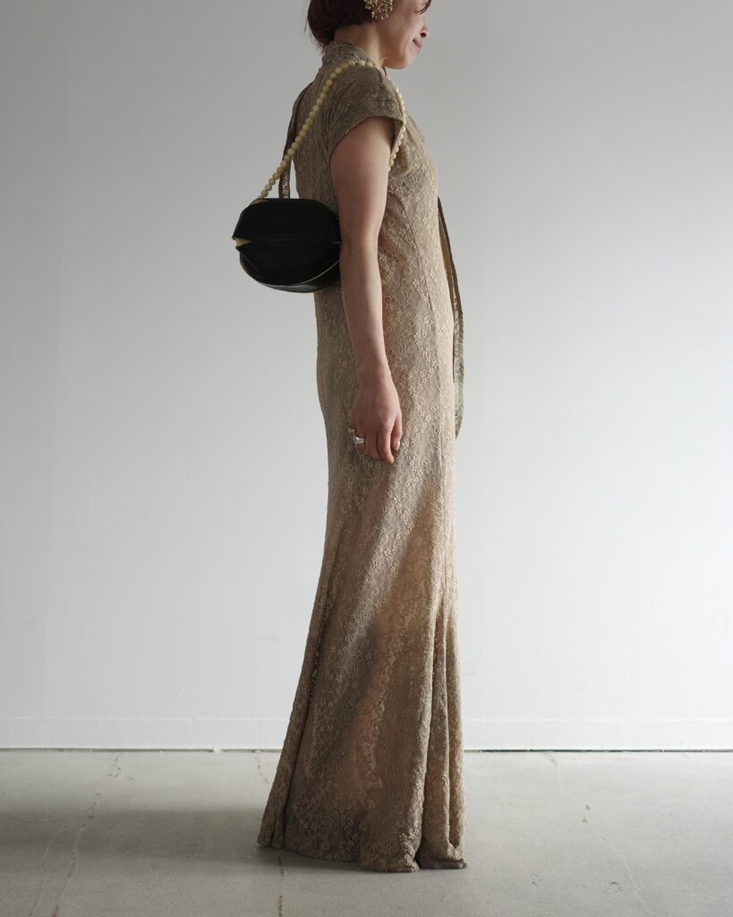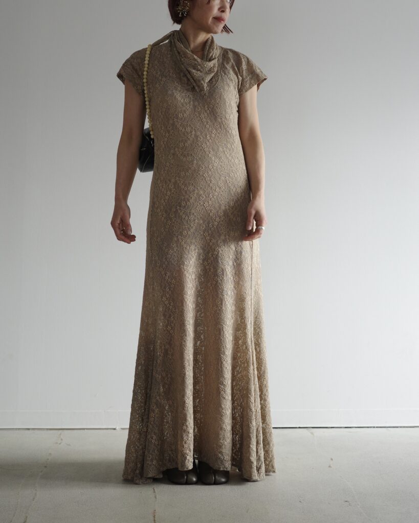 LEMAIREが追求する快適さとエレガンスの調和を映し出す、レースのスカーフドレス。